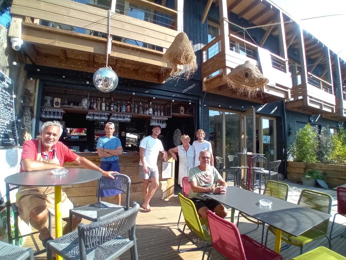 Écoresponsabilité maximale, du toit-terrasse végétalisé à la piscine naturelle en passant par la récupération des eaux de pluie et les menuiseries en pin des Landes. On y facture de 112 à 543 euros la nuitée (deux minimum) selon la saison et l’appartement. La Réunion étant aussi une ascendance forte de la famille, l’île est souvent au menu de la Guinguette des copains, corollaire culinaire le soir seulement à Kaze Océan. Les produits y sont locaux mais la touche des antipodes est quotidienne. Plat phare : les moules à la plancha et marinade citron-gingembre. Touristes mais surtout locaux en ont fait leur cantine épicée.